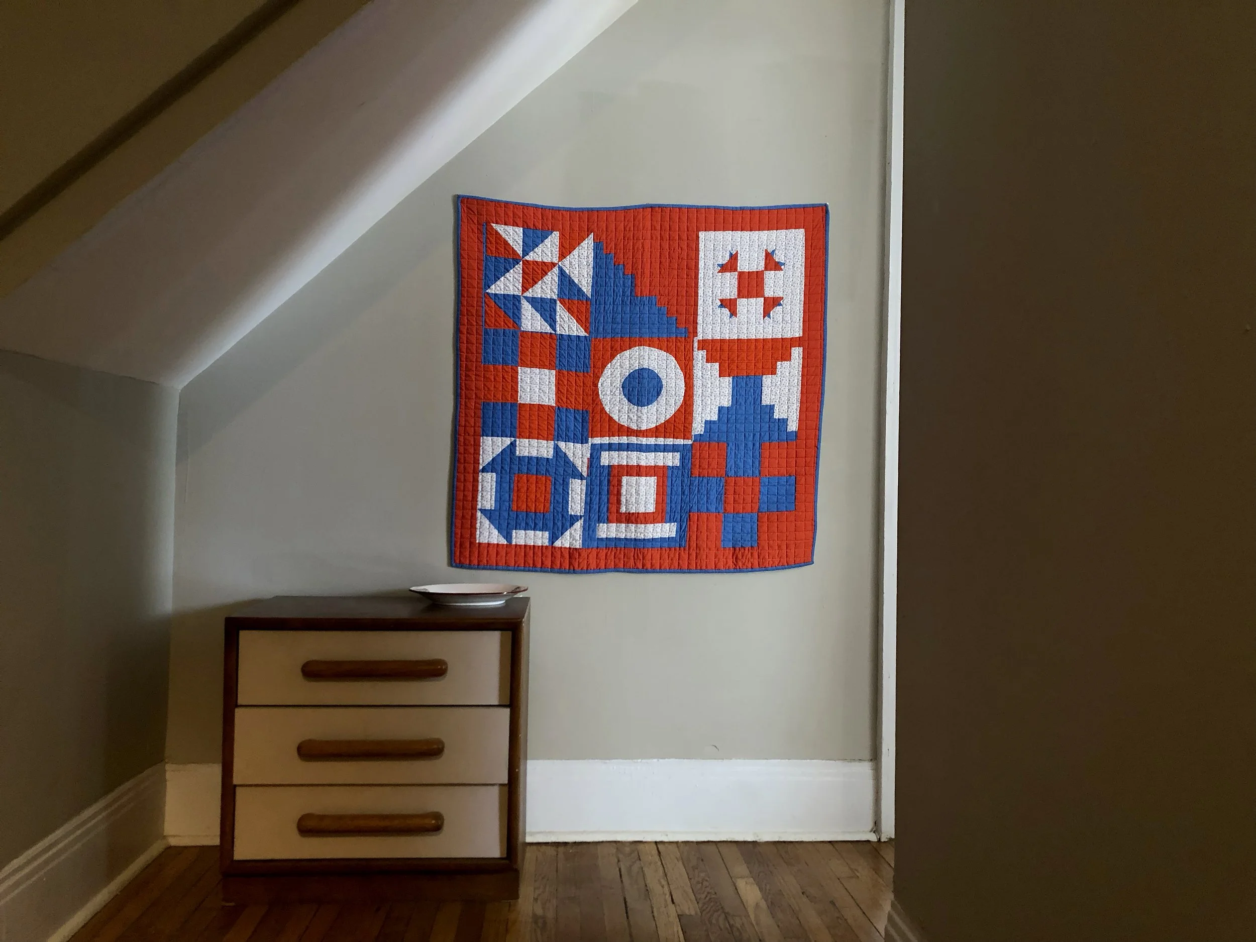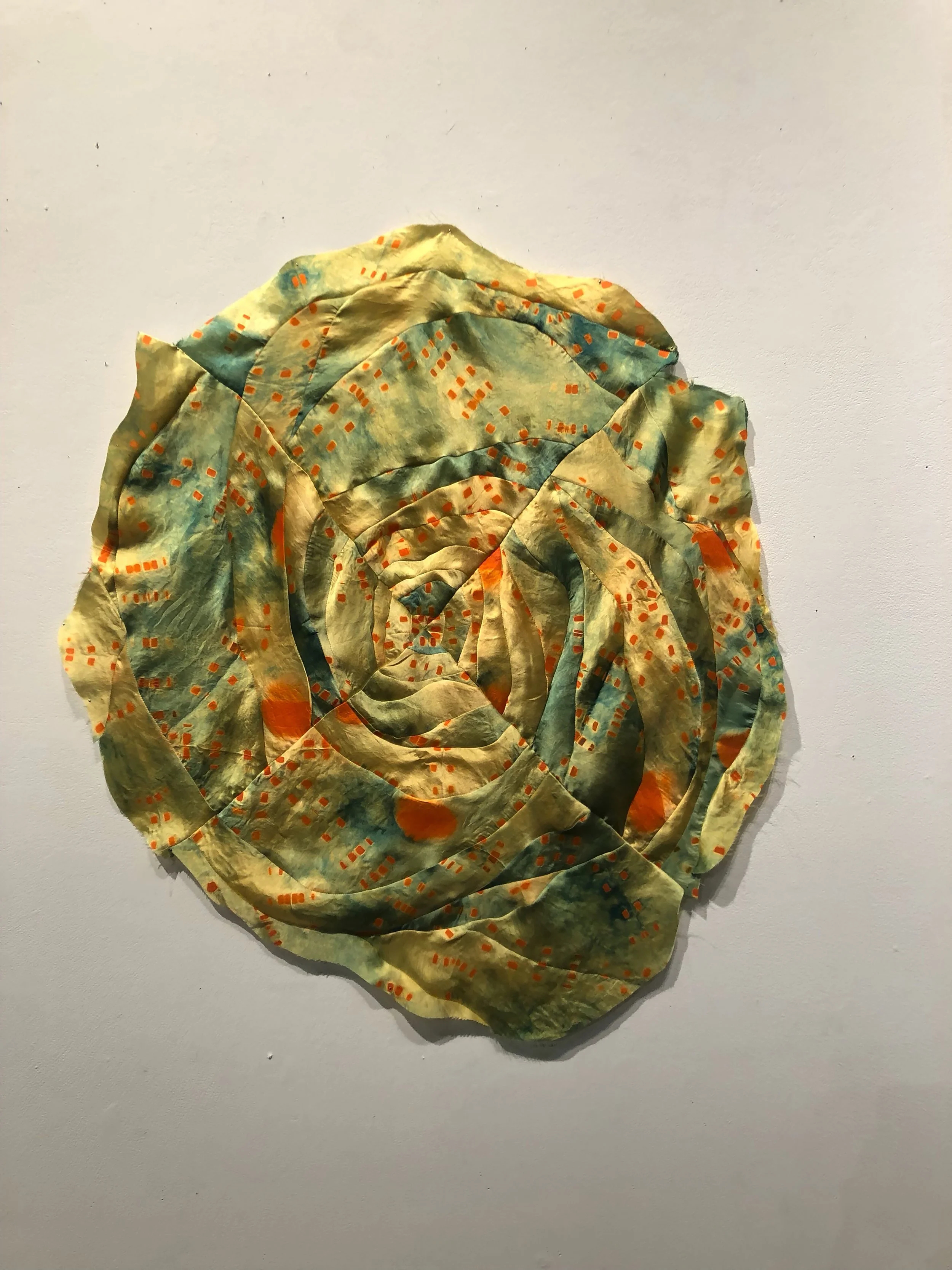 EmJ Mooney is a fiber and multimedia artist exploring spiritual themes and colorful landscapes through color and playfulness. She earned her BFA from the Kansas City Art Institute (KCAI) with a major in fiber and creative writing. EmJ Mooney is part of an artist collective called Ekklesia. In her work she uses traditional asian techniques to dye and sew sweet, silly, and beautiful objects with interesting form in a playful color palette.